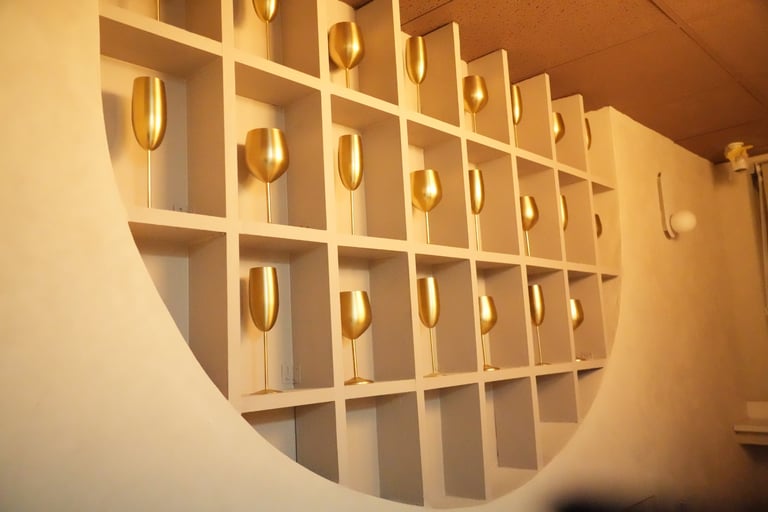 Traditionally our lounge layout includes comfortable white leather sofas suitable for seating up to 32 guests, coffee tables with leather stools, whilst still allowing space for a 2m width round corner stage, perfect for decor, backdrops, announcements, and performance, or karaoke, A further 4 guests can be comfortably seated on our window bar on high stools,, or this area can be used for. a complimentary aesthetic food/drink/catering buffet set up using chafing dishes, glass jars, or a display risers.. This set up will still allow for adequate floor space for dancing under our golden disco ball, and mingling.